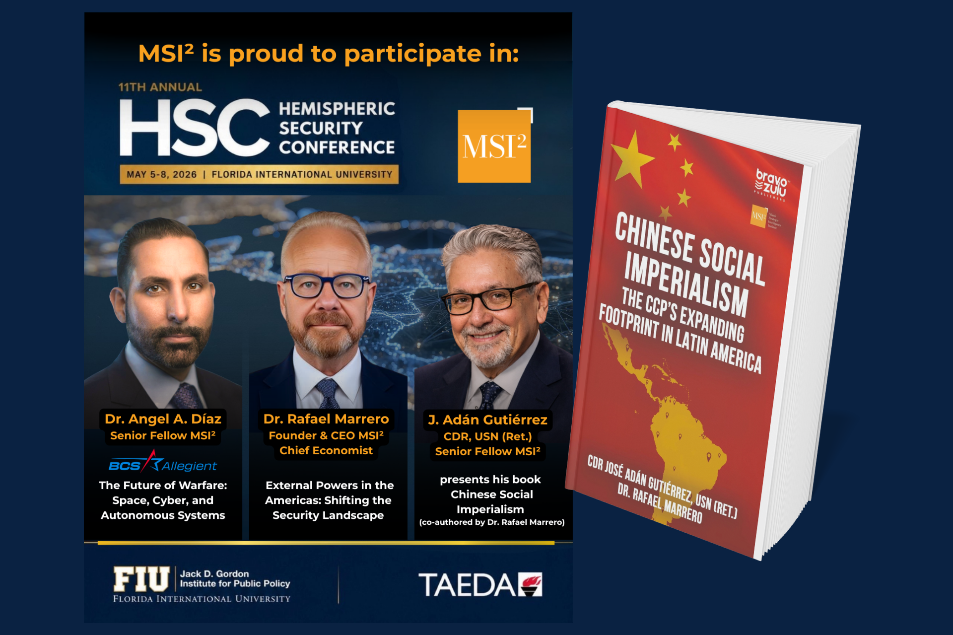 A key highlight of MSI²’s presence at the conference will be the presentation of its latest book, Chinese Social Imperialism: The CCP’s Expanding Footprint in Latin America, co-authored by CDR José Adán Gutiérrez, USN (Ret.), and Dr. Rafael Marrero. During the event, CDR Gutiérrez will present the book and engage directly with attendees, offering insights into the Chinese Communist Party’s expanding influence in the region and its strategic implications for the Western Hemisphere. The book will be available on-site for distribution and discussion.